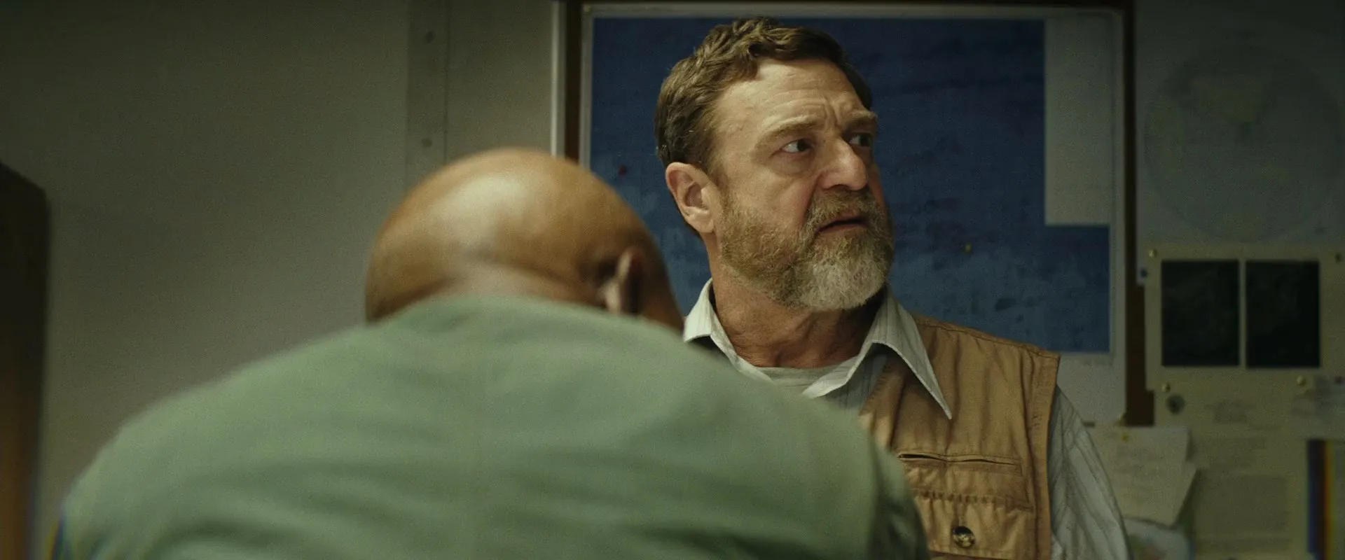 Actors: Tom Hiddleston as Captain James Conrad, Samuel L. Jackson as Lieutenant Colonel Preston Packard, John Goodman as Bill Randa, Brie Larson as Mason Weaver, Jing Tian as San Lin, Toby Kebbell as Maj. Jack Chapman / Kong Mo-Cap Services, John Ortiz as Victor Nieves, Corey Hawkins as Houston Brooks, Jason Mitchell as Glenn Mills, Shea Whigham as Earl Cole, Thomas Mann as Reg Slivko, Terry Notary as Kong Mo-Cap Services, John C. Reilly as Hank Marlow, Marc Evan Jackson as Steve Woodward, Eugene Cordero as Reles, MIYAVI as Gunpei Ikari, Will Brittain as Young Marlow / Marlow's Son, Richard Jenkins as Senator Al Willis, Allyn Rachel as Secretary O'Brien, Robert Taylor as Athena Captain, James M. Connor as General Ward (voice), Thomas Middleditch as Jerry (voice), Brady Novak as Base Guard, Peter Karinen as Chinook Pilot, Brian Sacca as Chinook Co-Pilot, Joshua Funk as Seismic Soldier, Daniel F. Malone as Boat Captain, Glenn Kiwi Hall as Boat Captain, Garreth Hadfield as Crew Chief, Shannon Brimelow as Kamikaze Pilot, Jon Quested as Dead Pilot, Korey Williams as Sunglasses Pilot, Dat Phan as Bar Thug, Cynthy Wu as Thug's Girlfriend, Beth Kennedy as Marlow's Wife, Bryan Chojnowski as Chicago Taxi Driver, Nick Robinson as Bar Guest (uncredited), Kevin Kent as Military technical advisor, Erin Moriarty as Bar Guest (uncredited)